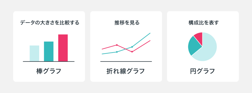 データの種類や伝えたいことによって、最適な図やグラフは異なります。