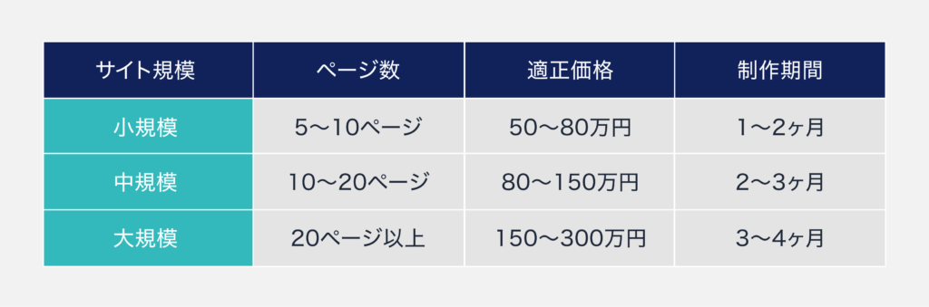 中小企業の場合、ホームページのリニューアルの適正価格は以下の通りです。