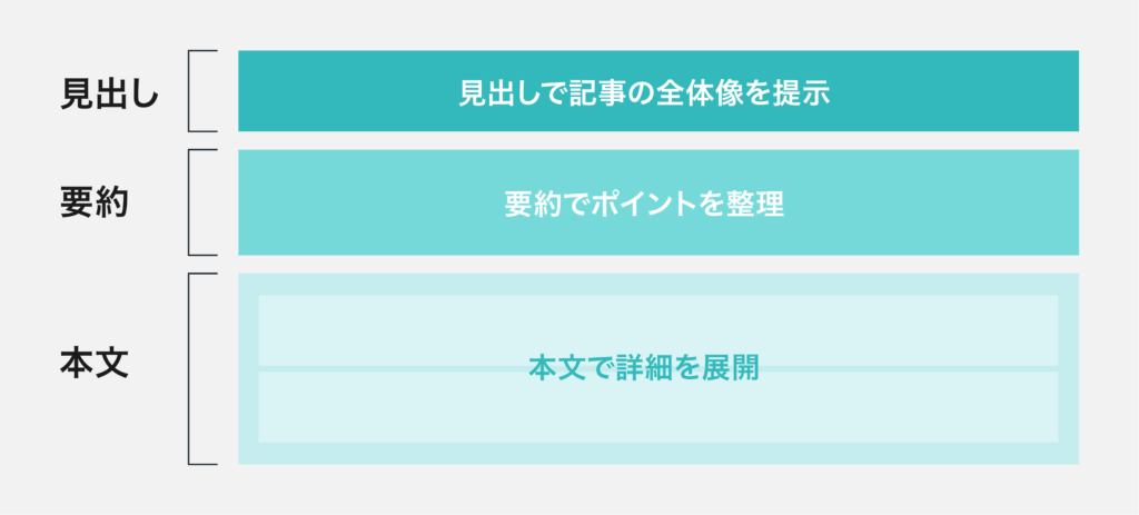 Dockでは、上記のように読者が途中で離脱しないよう、【見出し→要約→本文】という3段階構成を意識しています。