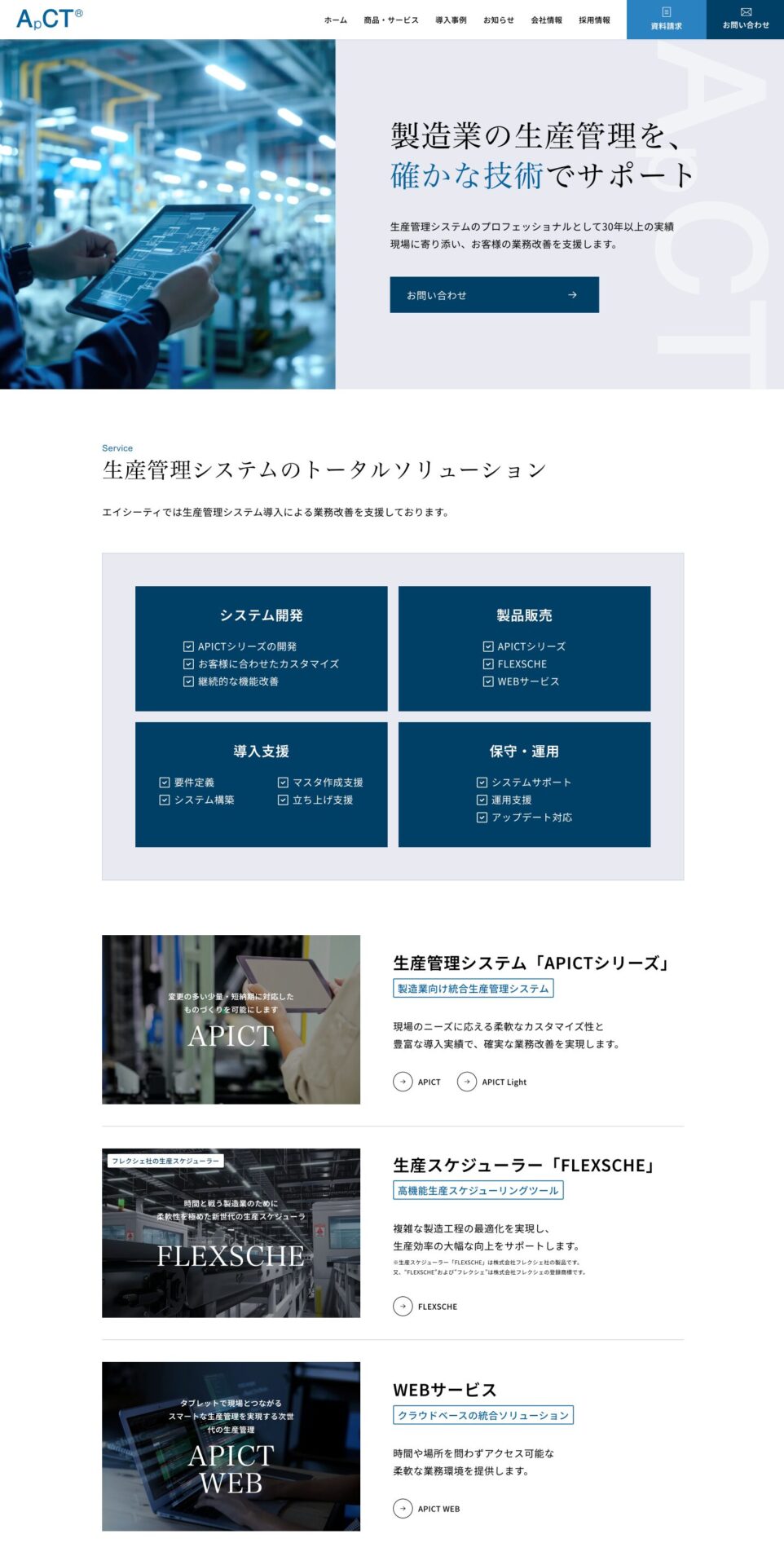 岡山県岡山市で製造業向けの生産管理システム開発・導入支援を手掛ける株式会社エイシーティ様のホームページのリニューアルを担当させていただきました。