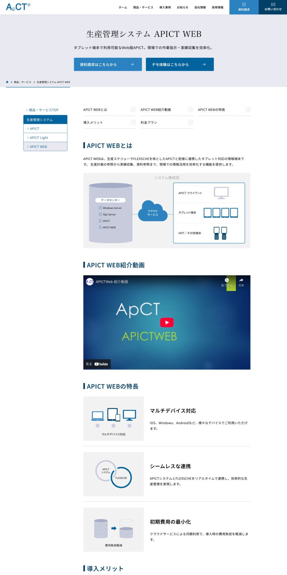 システム開発から製品販売、導入支援、保守・運用まで、トータルソリューションの全体像を図解を用いて分かりやすく伝え、製造業のお客様が必要な情報にスムーズにアクセスできるサイトに生まれ変わりました。 - 制作期間